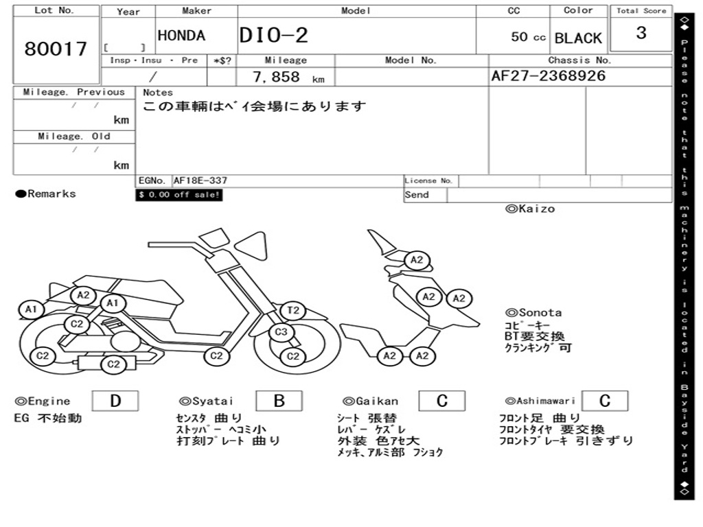 | Аукцион | ARAI BAYSIDE |