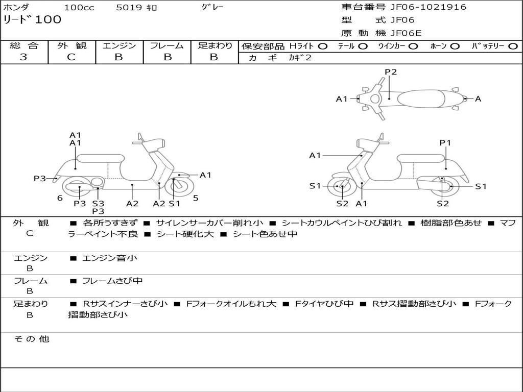 | Номер рамы / VIN | JF06-1021916 |