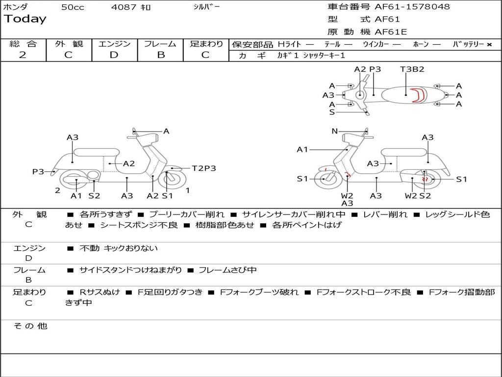 | Номер рамы / VIN | AF61-1578048 |