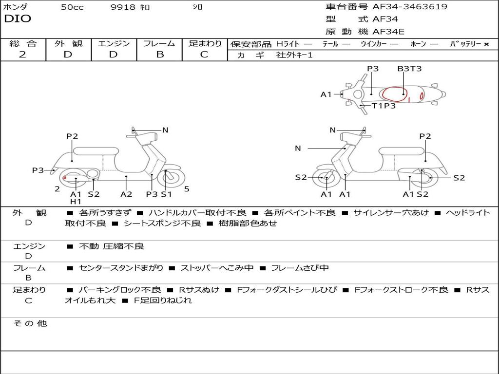 | Номер рамы / VIN | AF34-3463619 |