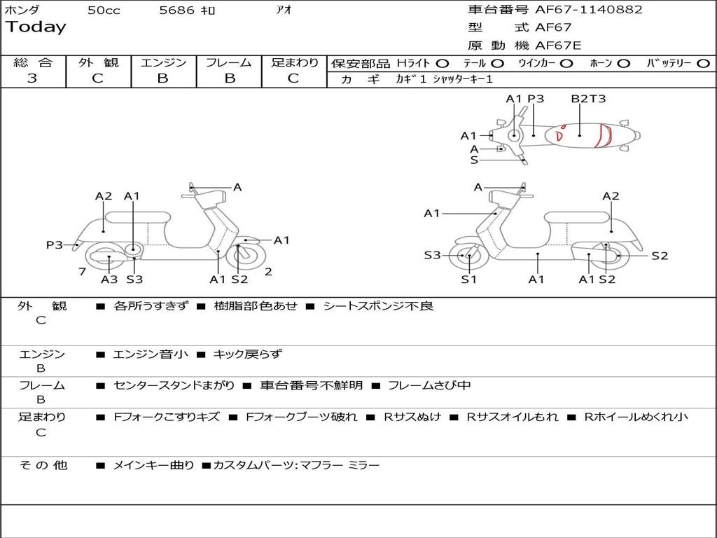 | Номер рамы / VIN | AF67-1140882 |