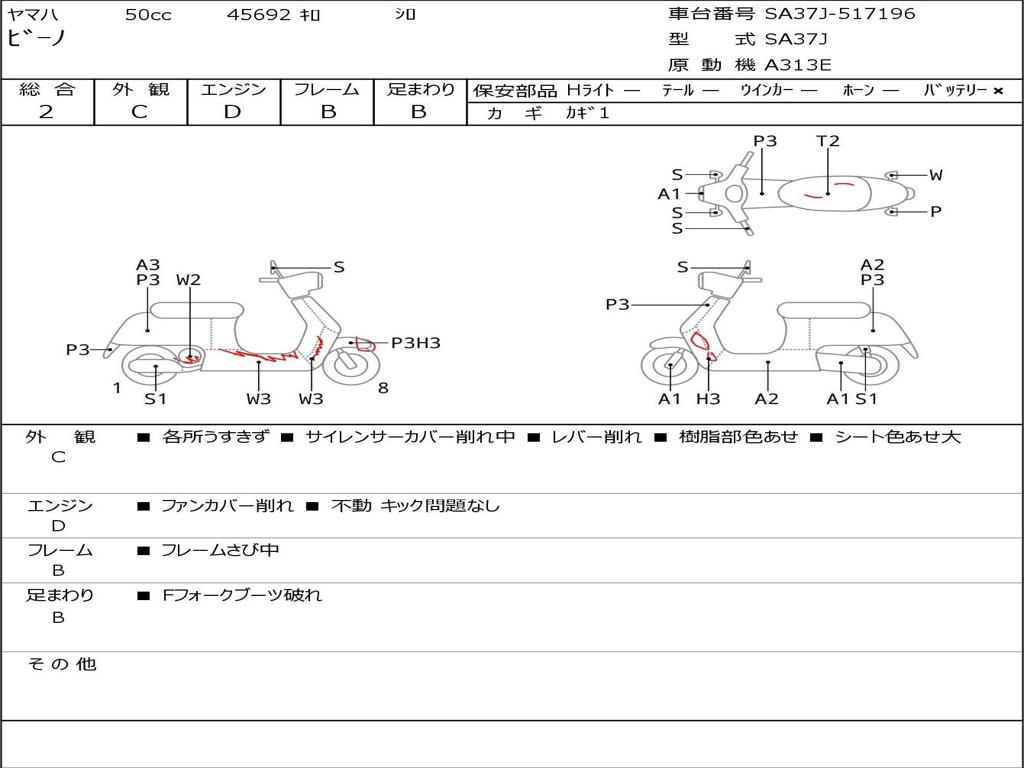 | Номер рамы / VIN | SA37J-517196 |