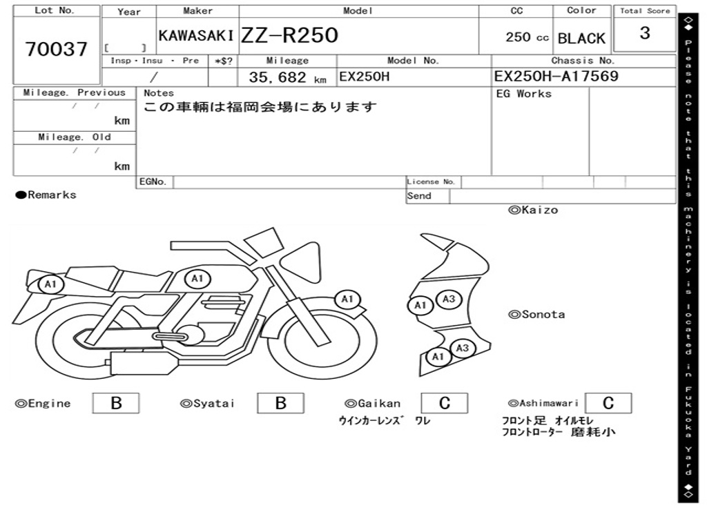 | Номер рамы / VIN | EX250H-A17569 |