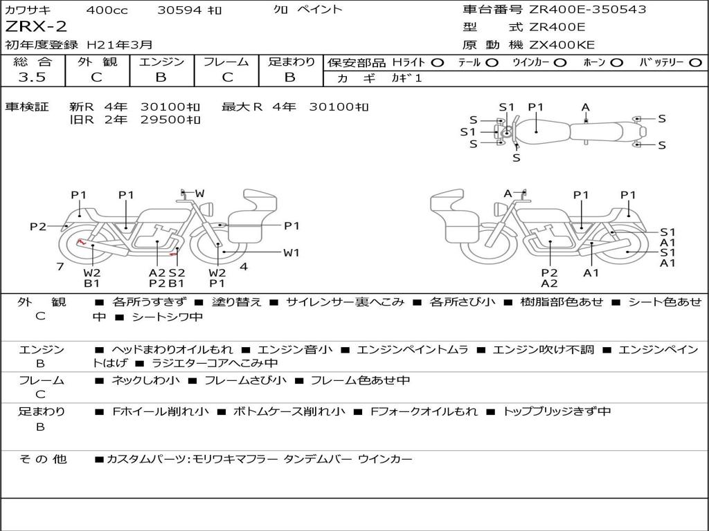 | Номер рамы / VIN | ZR400E-350543 |