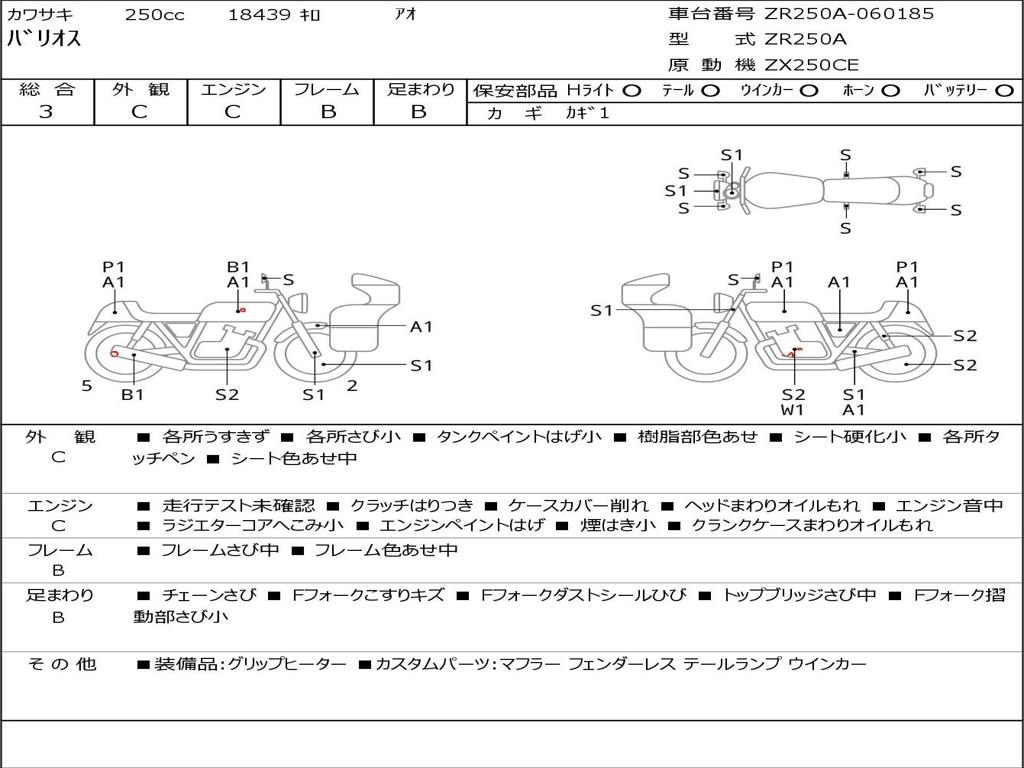 | Номер рамы / VIN | ZR250A-060185 |