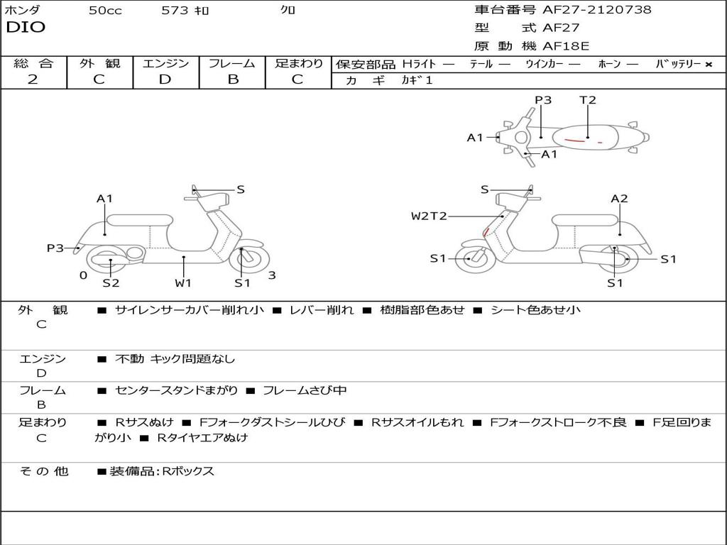 | Номер рамы / VIN | AF27-2120738 |