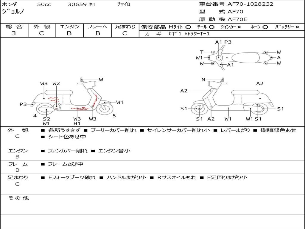 | Номер рамы / VIN | AF70-1028232 |
