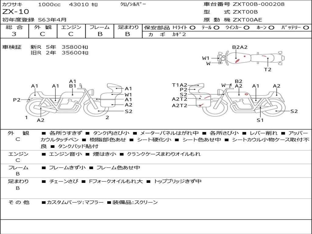 | Номер рамы / VIN | ZXT00B-000208 |