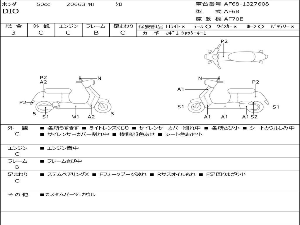 | Номер рамы / VIN | AF68-1327608 |