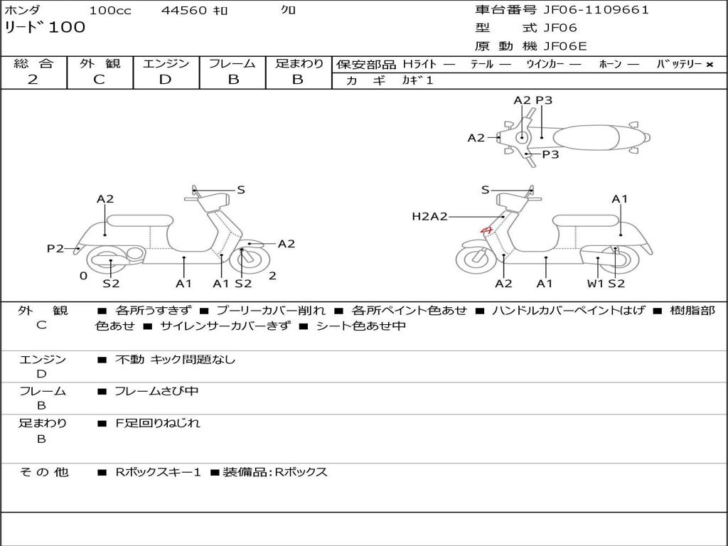 | Номер рамы / VIN | JF06-1109661 |