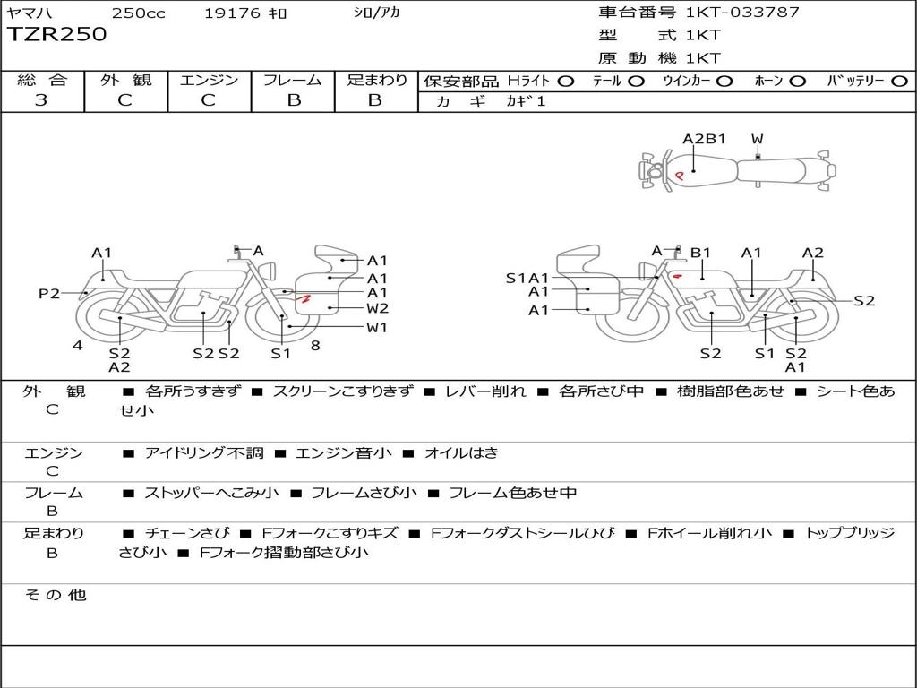| Номер рамы / VIN | 1KT-033787 |