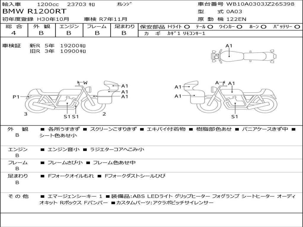 | Номер рамы / VIN | WB10A0303JZ265398 |