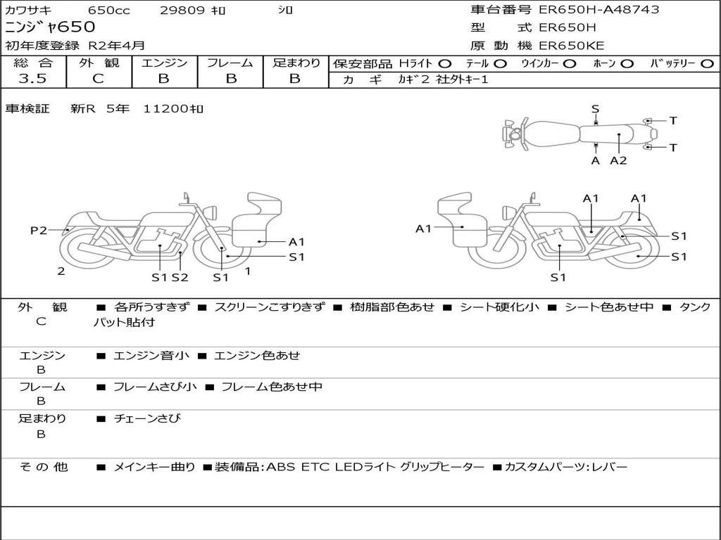 | Номер рамы / VIN | ER650H-A48743 |