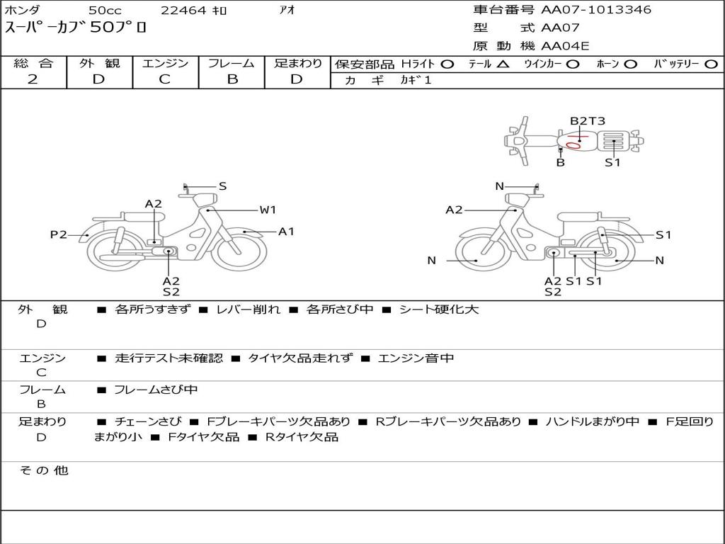 | Номер рамы / VIN | AA07-1013346 |