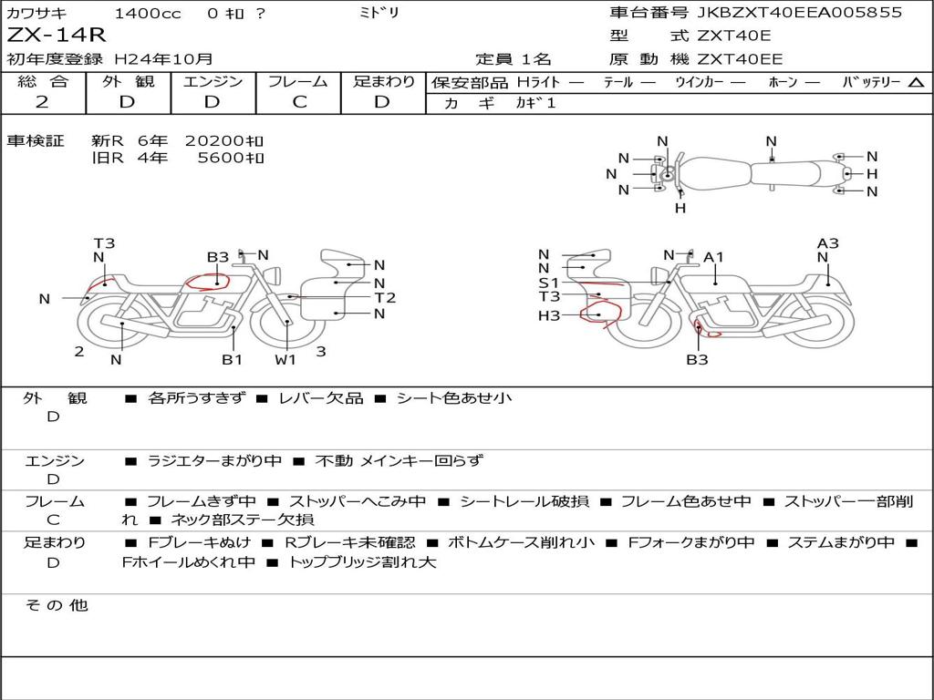 | Номер рамы / VIN | JKBZXT40EEA005855 |