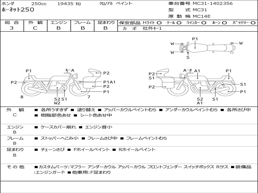 | Номер рамы / VIN | MC31-1402356 |