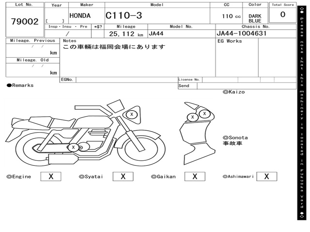 | Номер рамы / VIN | JA44-1004631 |