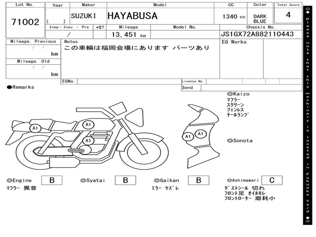 | Номер рамы / VIN | JS1GX72A882110443 |