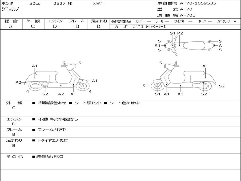 Номер рамы / VIN | AF70-1059535 |