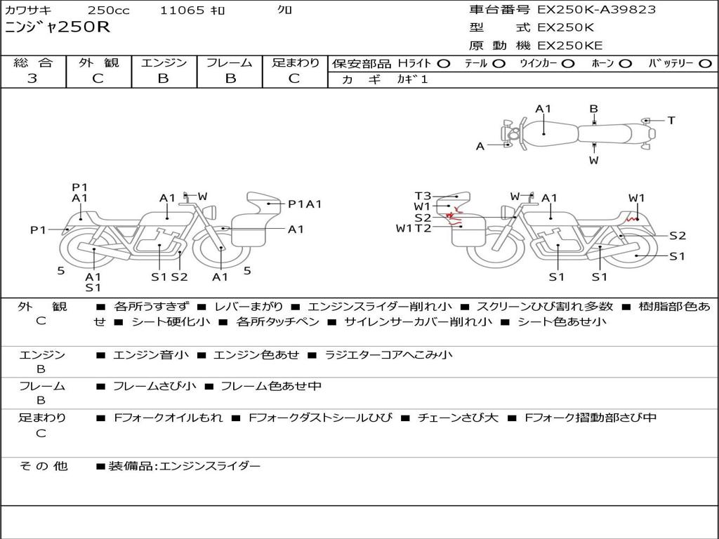 | Номер рамы / VIN | EX250K-A39823 |