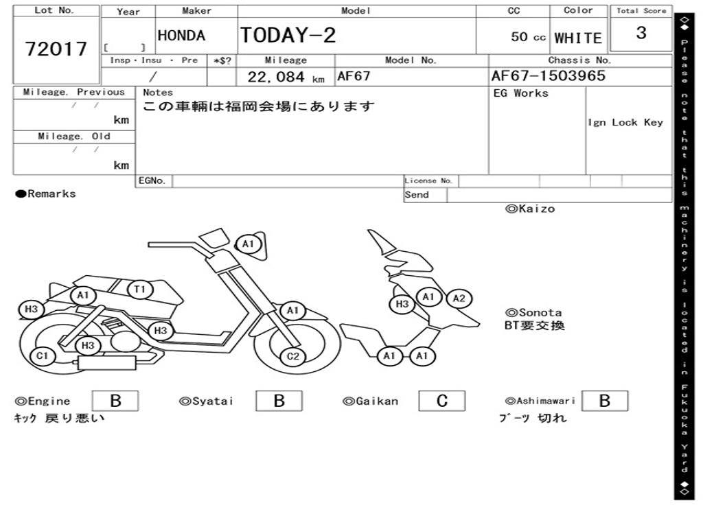 | Номер рамы / VIN | AF67-1503965 |