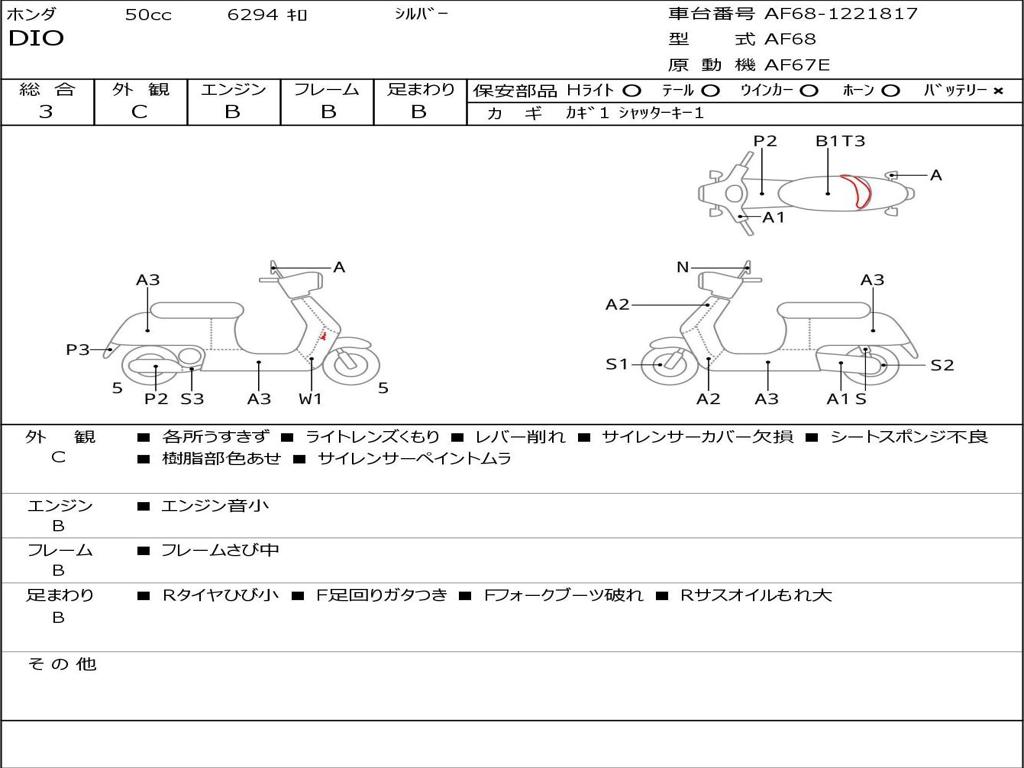 | Номер рамы / VIN | AF68-1221817 |