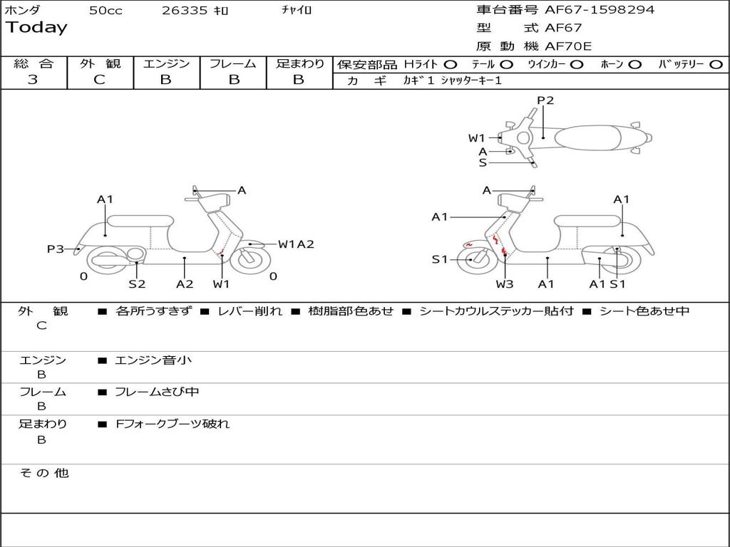 | Номер рамы / VIN | AF67-1598294 |