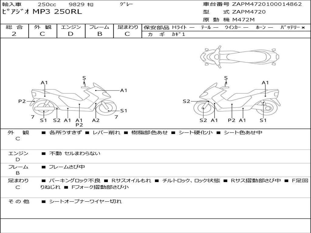 | Номер рамы / VIN | ZAPM4720100014862 |