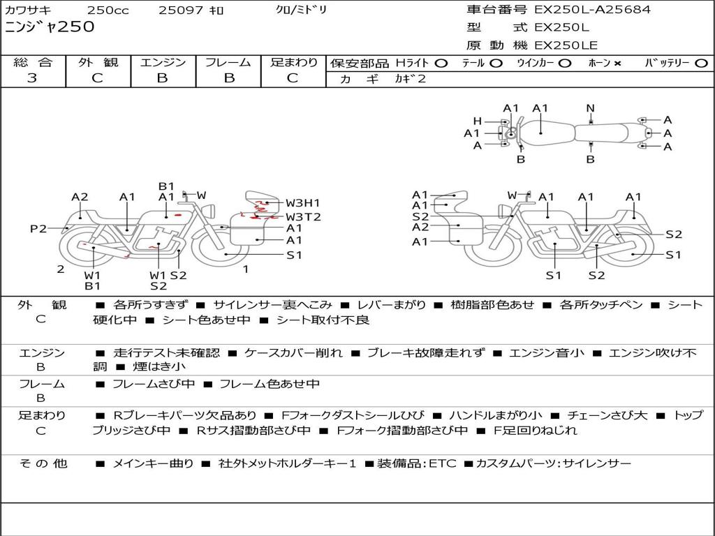 | Номер рамы / VIN | EX250L-A25684 |