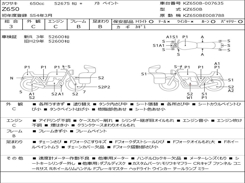 Номер рамы / VIN | KZ650B-007635 |