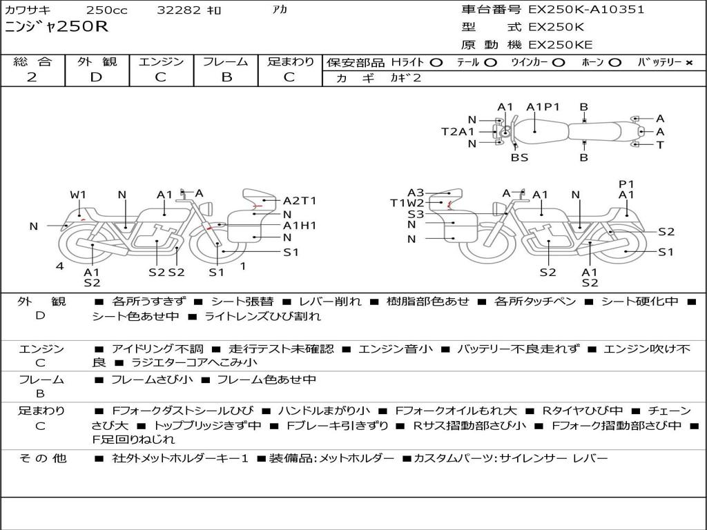 | Номер рамы / VIN | EX250K-A10351 |
