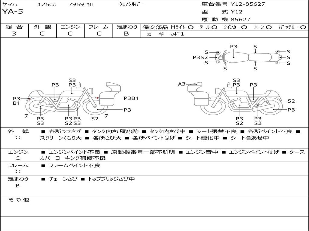 | Номер рамы / VIN | Y12-85627 |