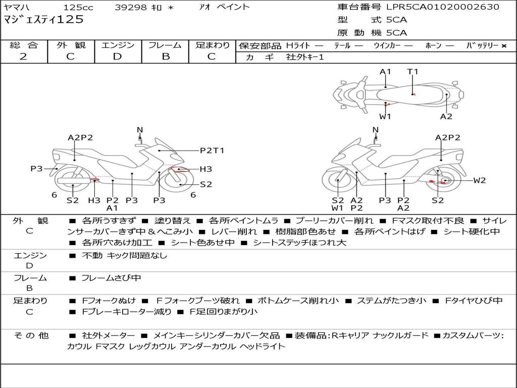 | Номер рамы / VIN | LPR5CA01020002630 |