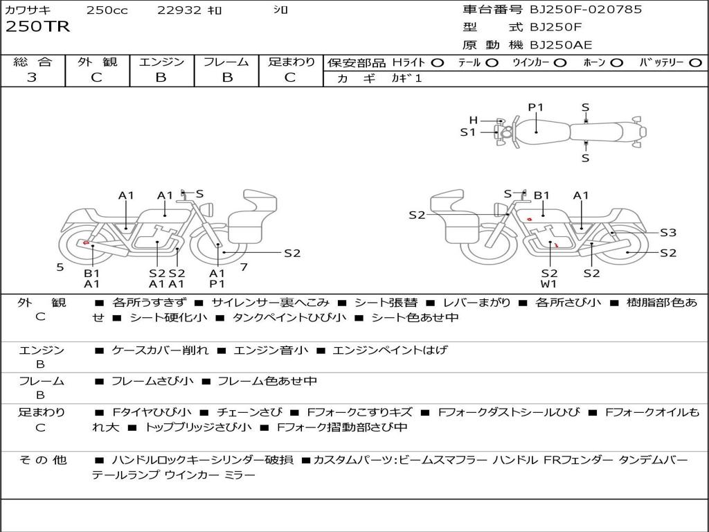 | Номер рамы / VIN | BJ250F-020785 |