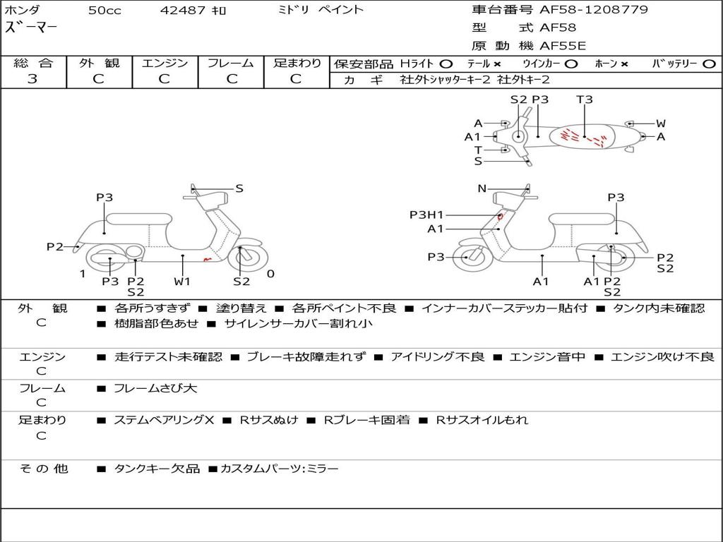 | Номер рамы / VIN | AF58-1208779 |