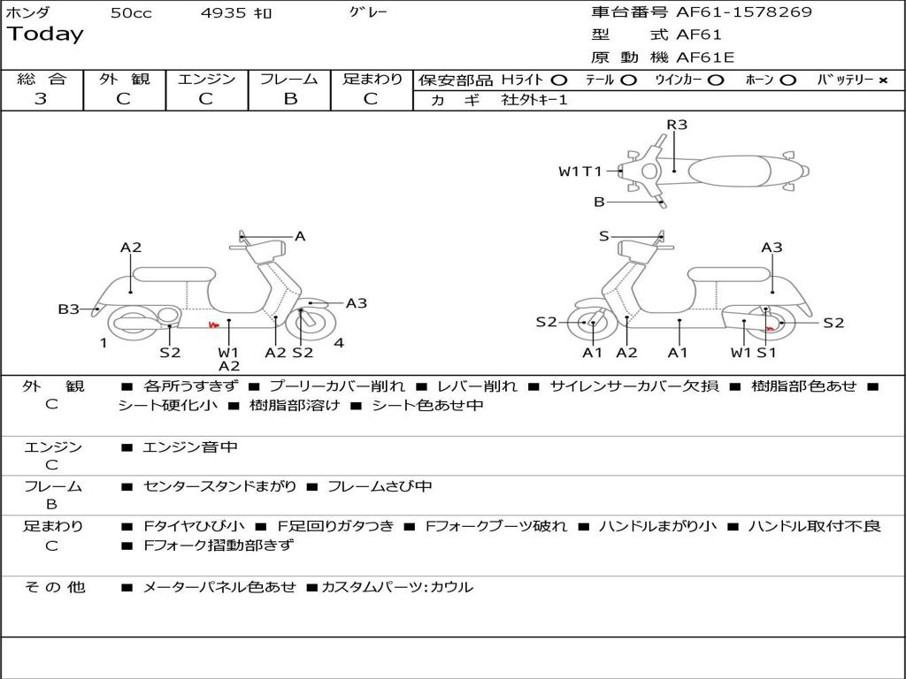 | Номер рамы / VIN | AF61-1578269 |