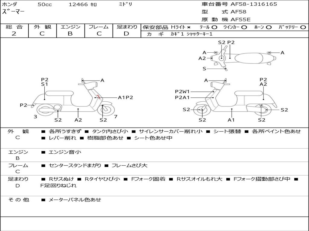 | Номер рамы / VIN | AF58-1316165 |