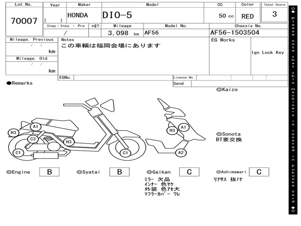 | Номер рамы / VIN | AF56-1503304 |