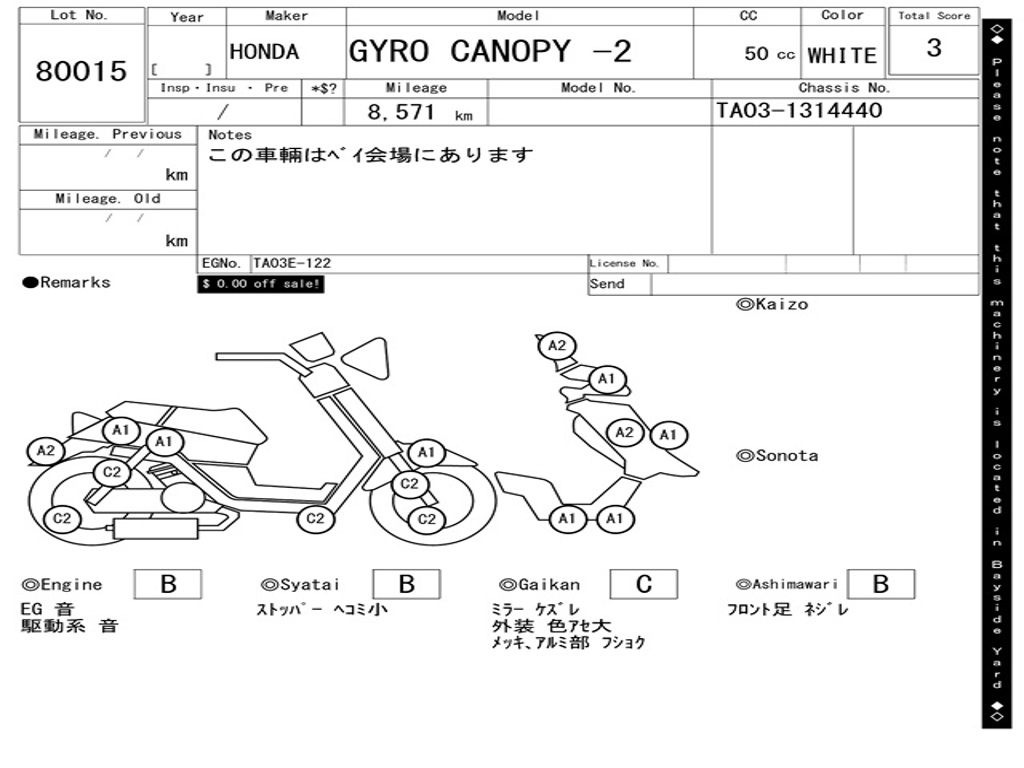 | Аукцион | ARAI BAYSIDE |