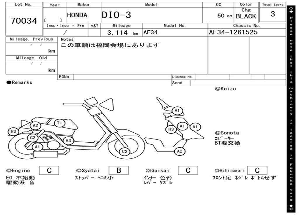 | Номер рамы / VIN | AF34-1261525 |