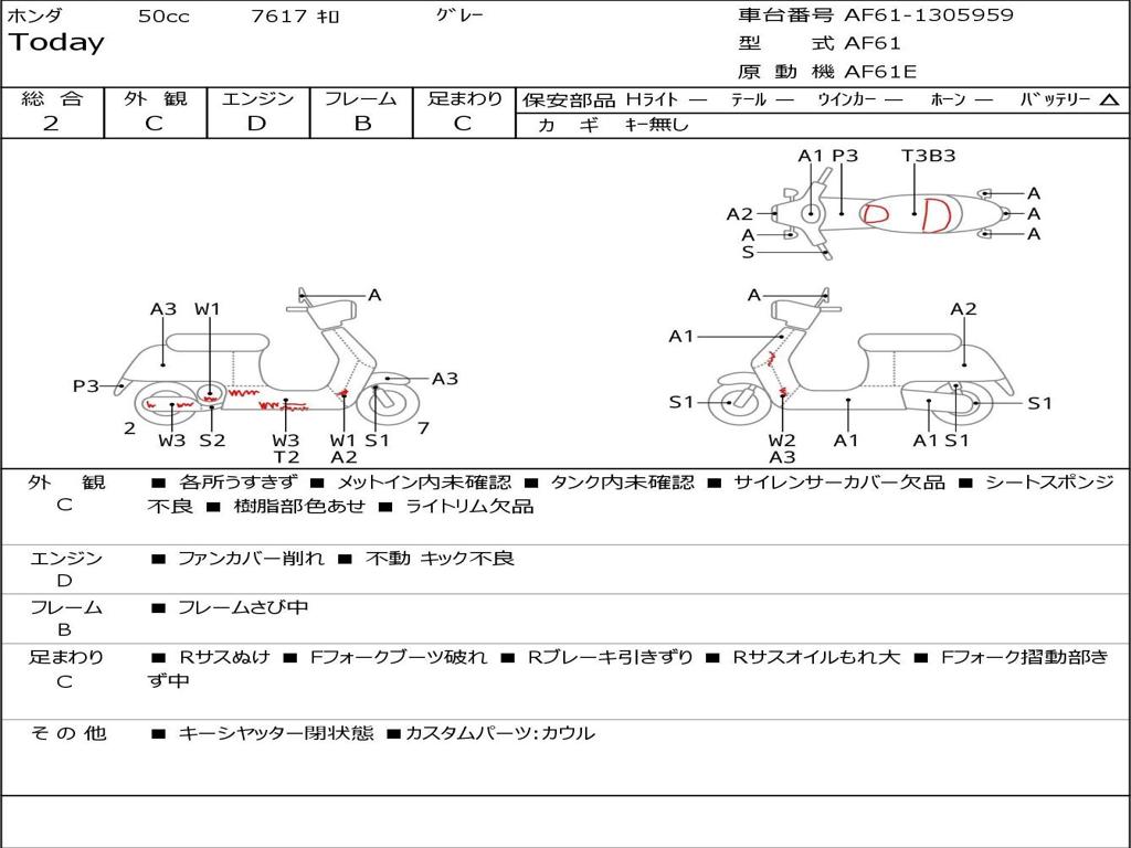 | Номер рамы / VIN | AF61-1305959 |