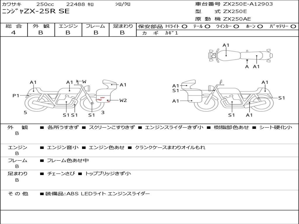 | Номер рамы / VIN | ZX250E-A12903 |