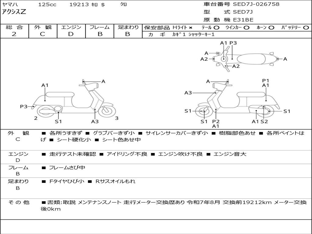 | Номер рамы / VIN | SED7J-026758 |