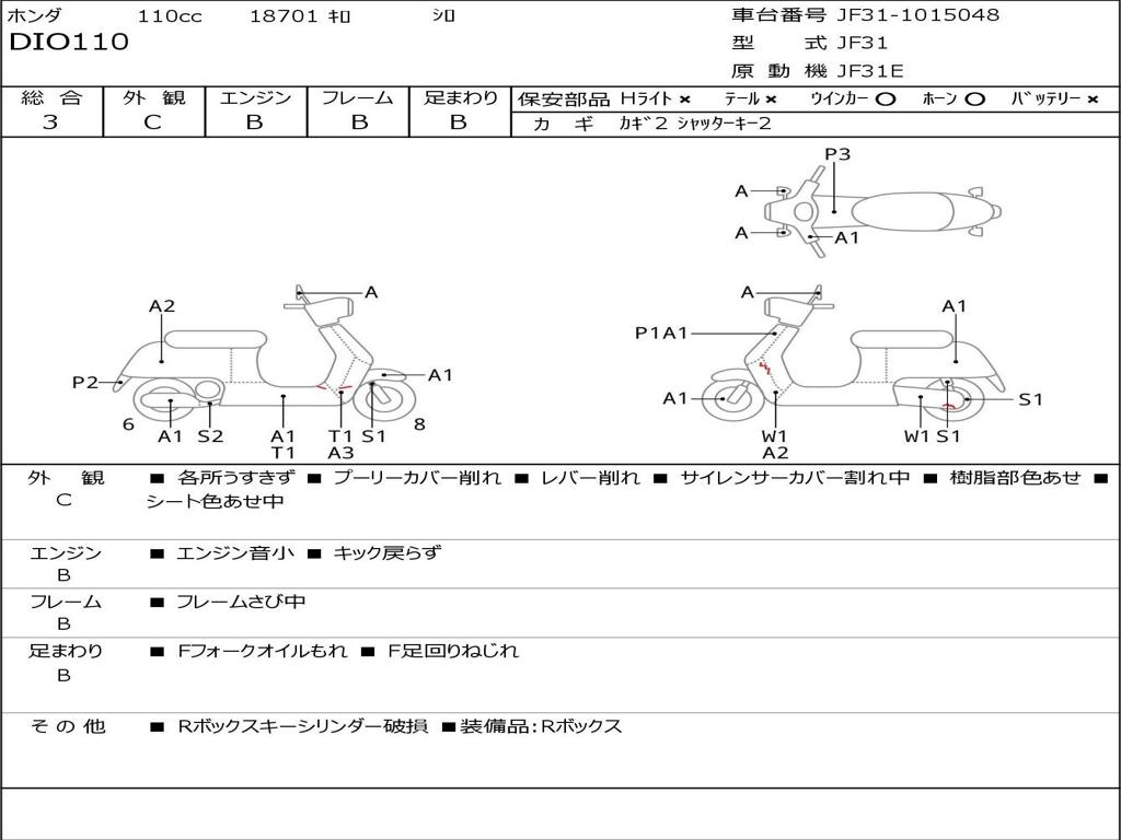 | Номер рамы / VIN | JF31-1015048 |