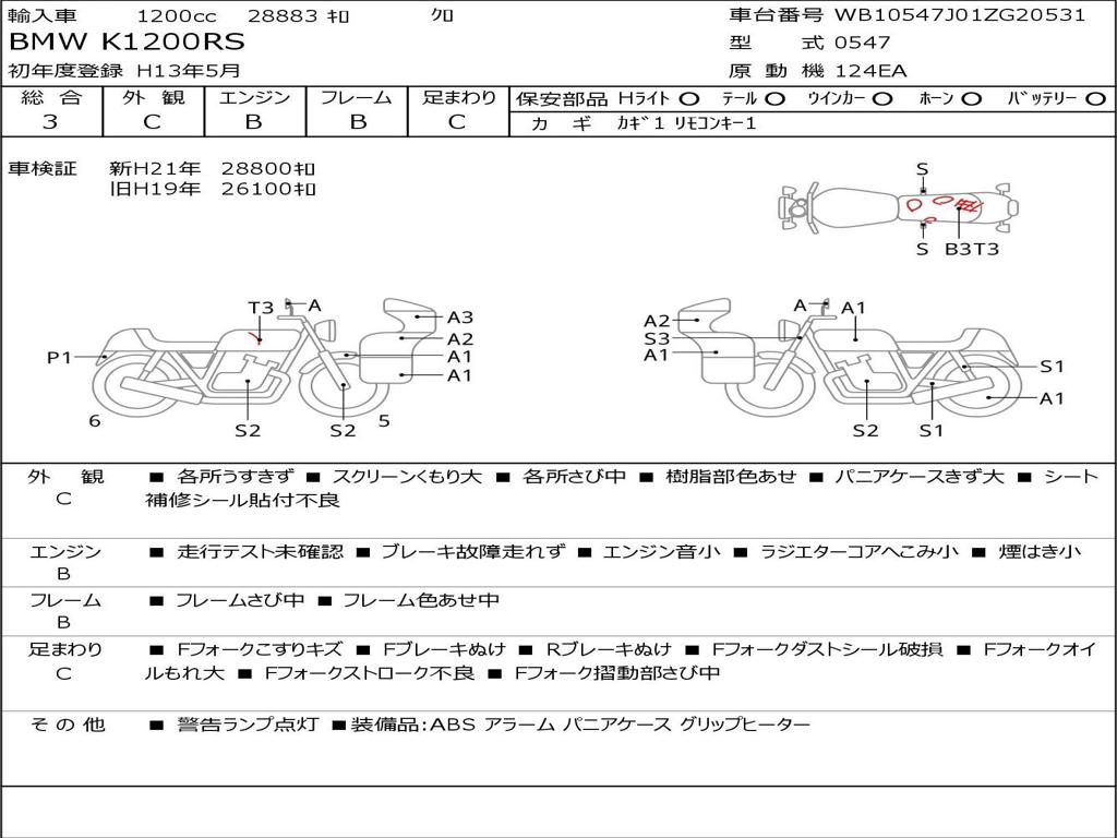 | Номер рамы / VIN | WB10547J01ZG20531 |