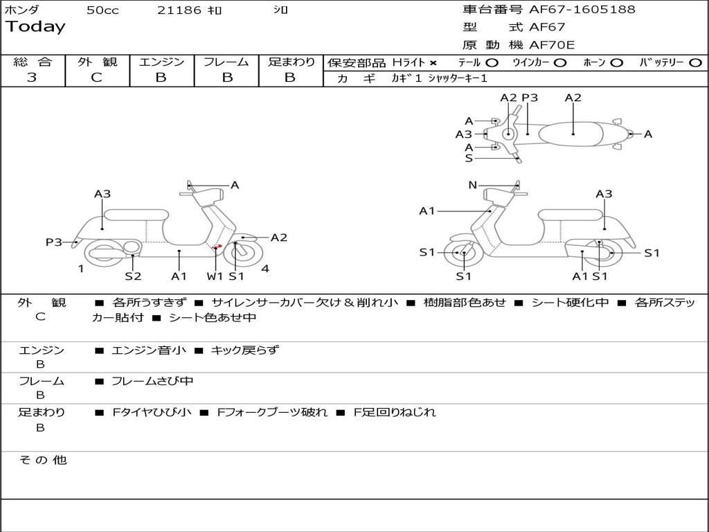 | Номер рамы / VIN | AF67-1605188 |