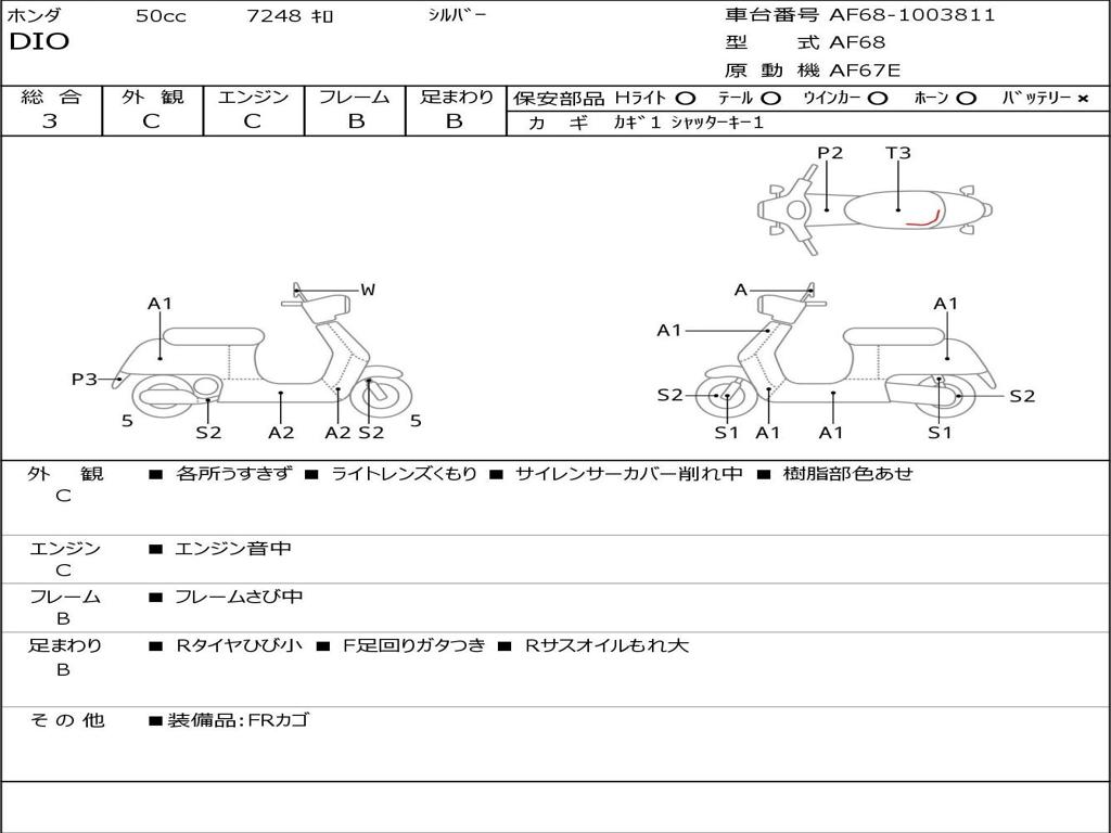 | Номер рамы / VIN | AF68-1003811 |