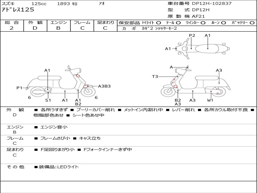 | Номер рамы / VIN | DP12H-102837 |
