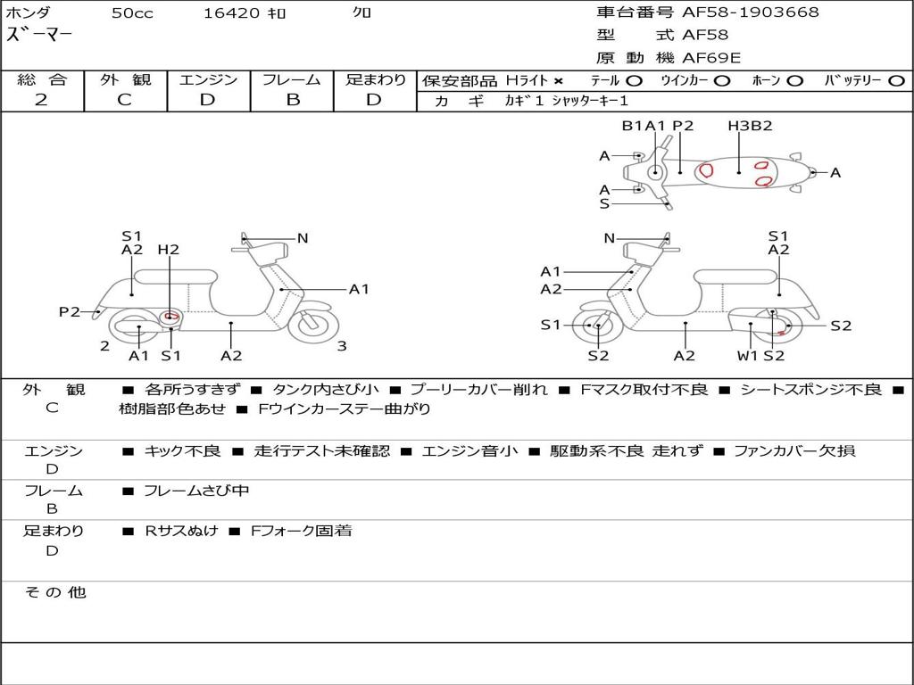 | Номер рамы / VIN | AF58-1903668 |