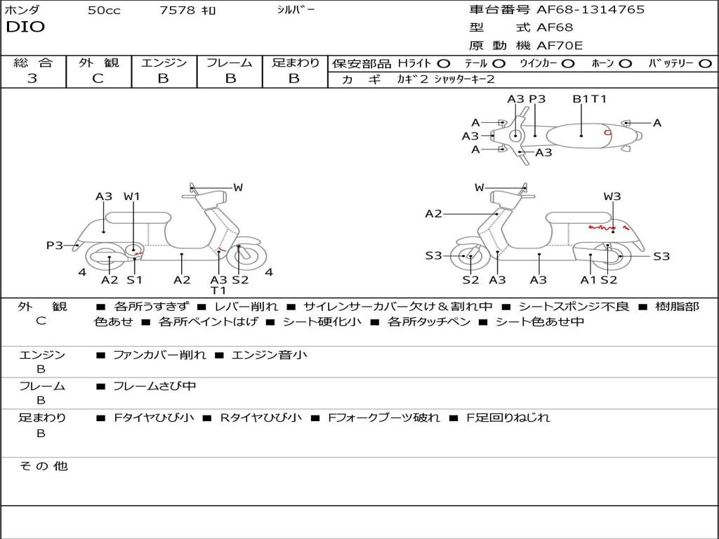 | Номер рамы / VIN | AF68-1314765 |